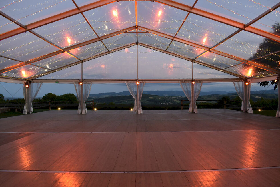 - Tente cristal (toiture transparente pour une ambiance lumineuse)