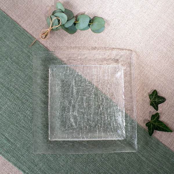 L’idée d’ajouter une alternative à l’assiette en porcelaine est d’apporter de l’originalité à vos plats en utilisant une assiette en verre avec son effet glacé.