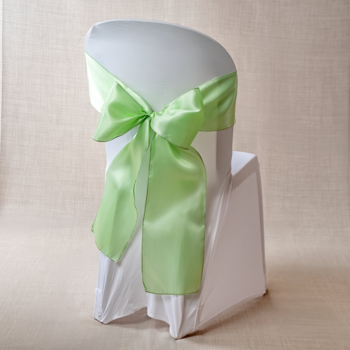 Les écharpes de chaises en satin vert ou blanc sont incluses dans cette location.